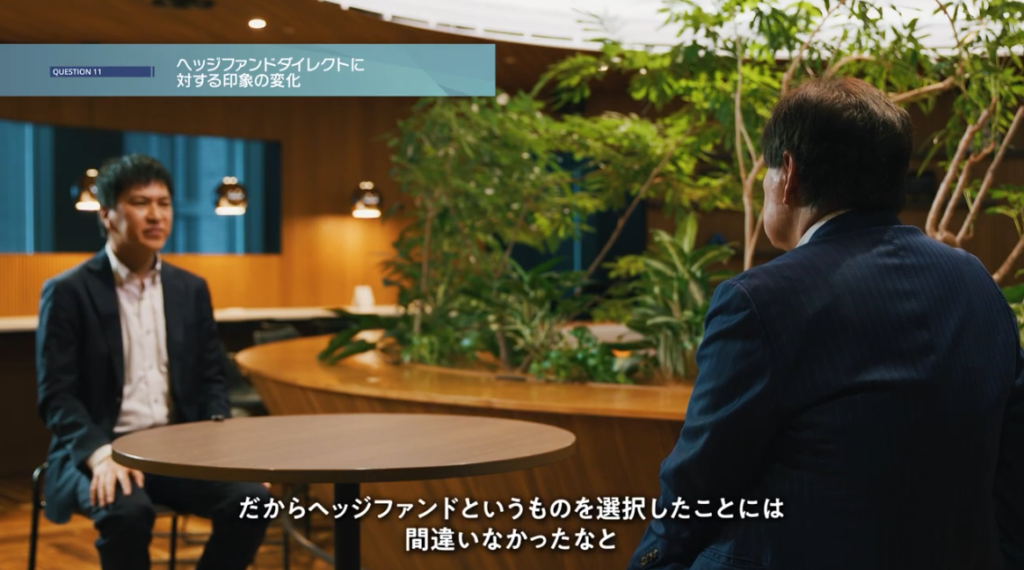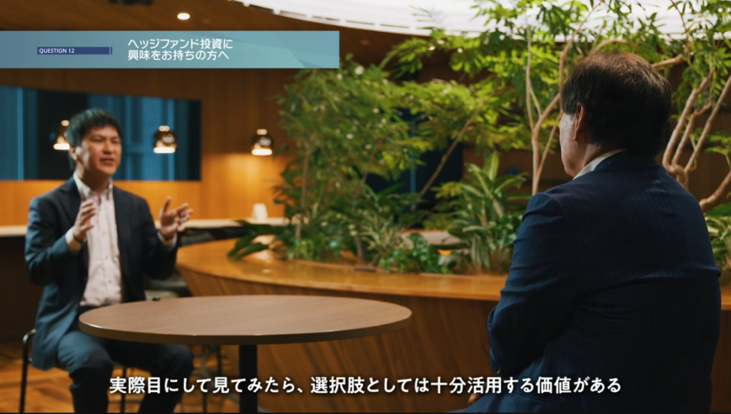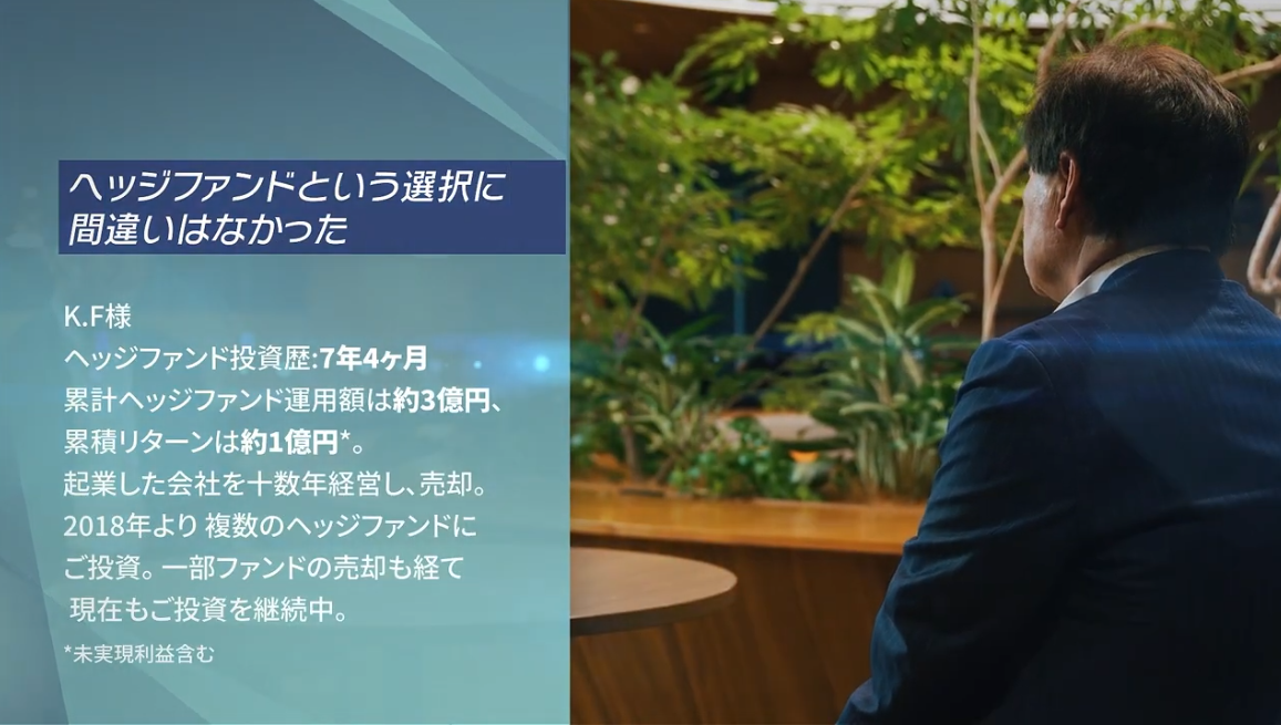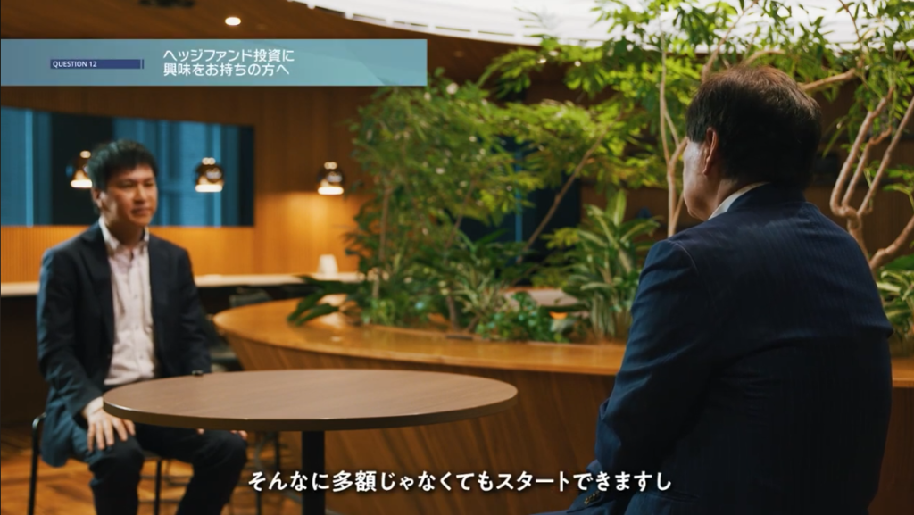 その中で御社の社長(創業者の当時の役職)の書かれた本がありまして、それがまさにヘッジファンドについての本だったんですけれども、日本でも投資できると、1000万ぐらいからできるんだ(書籍発売2021年当時)、っていうことが書いてありまして、それで御社を知ったというか、興味を持ったんですね。
