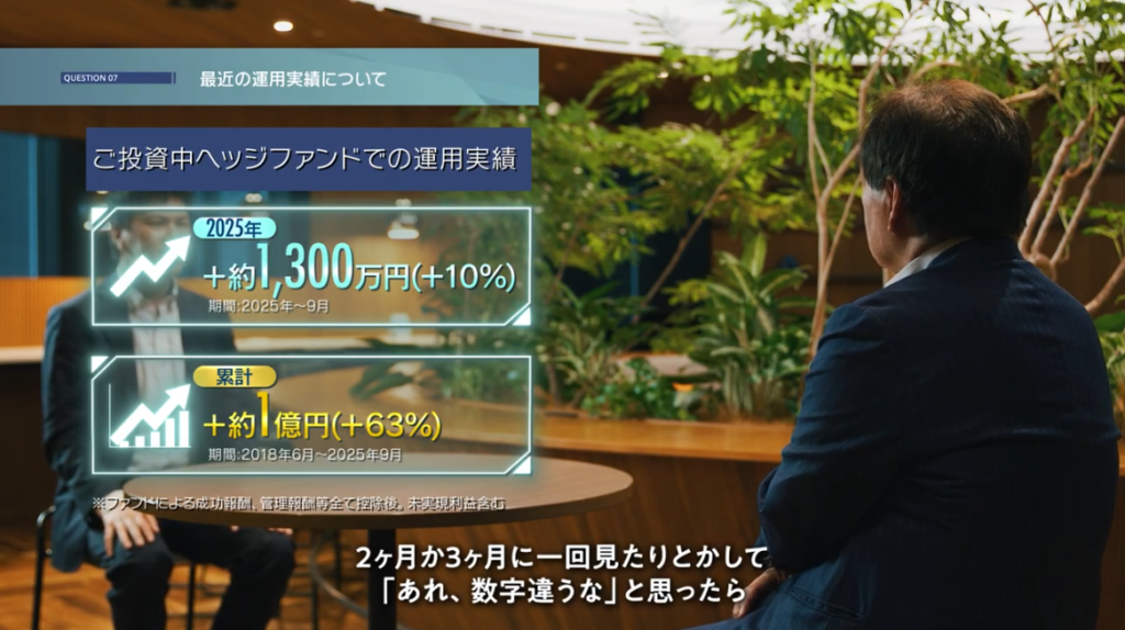 だからヘッジファンドというものを選択したことには間違いないんだなと。この会社のものを選んだのも良かったなという風に思ってますね。だから最初からどう変わったかつったら、そんな違いない。まあまあ良くなったよっていうぐらいですかね。
